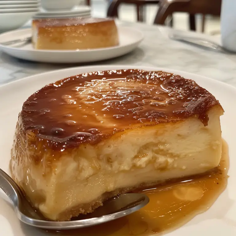 Vous pouvez également garnir le flan d’une cuillerée de crème fouettée, de baies fraîches ou d’une pincée de cannelle pour plus de saveur et d’attrait visuel.